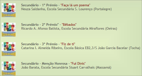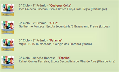 Apesar de, na nossa escola, termos tido alunos a participar, nenhum deles conseguiu ficar entre os vencedores. No entanto, congratulamos pela sua participação.